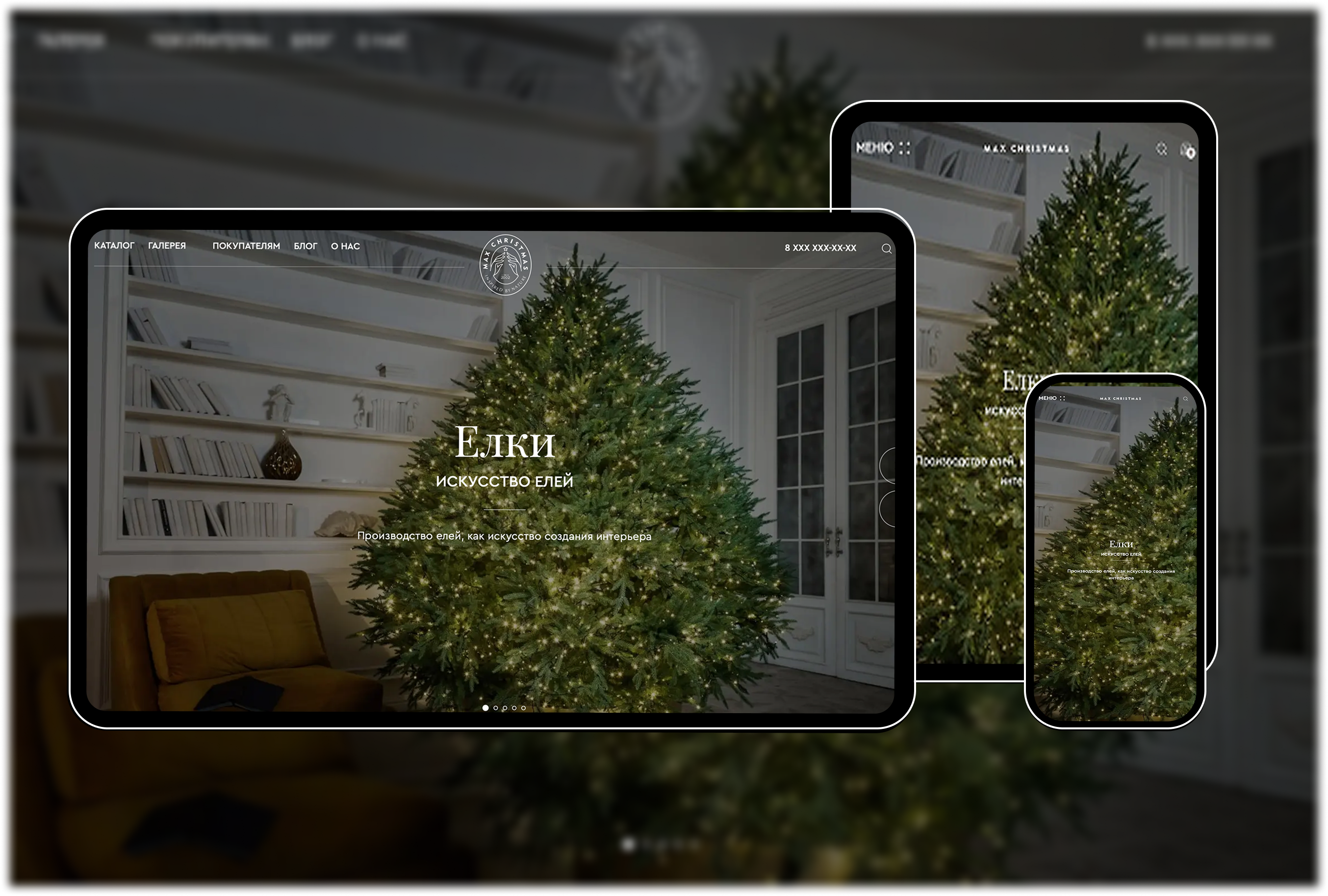 Дизайн передает магию праздника и помогает быстро выбрать дерево. Реализовали простой каталог с сортами и ценами, блок с доставкой и украшениями, а также онлайн-оплату.